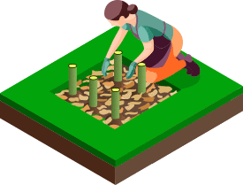 Allez faire le plein de sacs de paillis de feuillus sans couleur afin de couvrir d’une bonne épaisseur la totalité de votre fosse de plantation et ainsi empêcher les mauvaises herbes de venir compétitionner vos boutures et les empêcherde pousser.