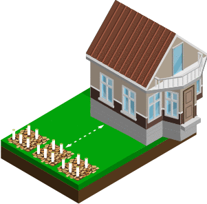 Il est recommandé de planter vos boutures de saules arbustifs à une distance minimale de 2.5 mètres (10 pieds) de vos fondations/drain français ou toute autre structure de vos bâtiments.