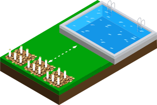 Il est recommandé de planter vos boutures de saules arbustifs à une distance minimale de 3 mètres (9 pieds) d’une piscine ou toute autre source d’eau artificielle toujours afin de respecter un minimum sécuritaire pour vos installations.