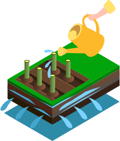 Il faut que le sol soit toujours humide tout en évitant la stagnation de l’eau afin de préserver l’intégrité de vos boutures. Pour savoir si le drainage du sol est efficace, avant la plantation, remplissez le trou d’eau et regardez la vitesse d’absorption du sol. Si la vitesse est trop lente, il faudra retravailler le sol et faire en sorte de décompacter celui-ci.