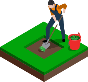 Enlever le gazon et toutes les autres matières végétales sur la totalité de la surface de votre fosse de plantation. Il est important de dégager, de nettoyer toute la surface de votre fosse jusqu’à la terre. Il ne doit rester aucune racine ou matière végétale.